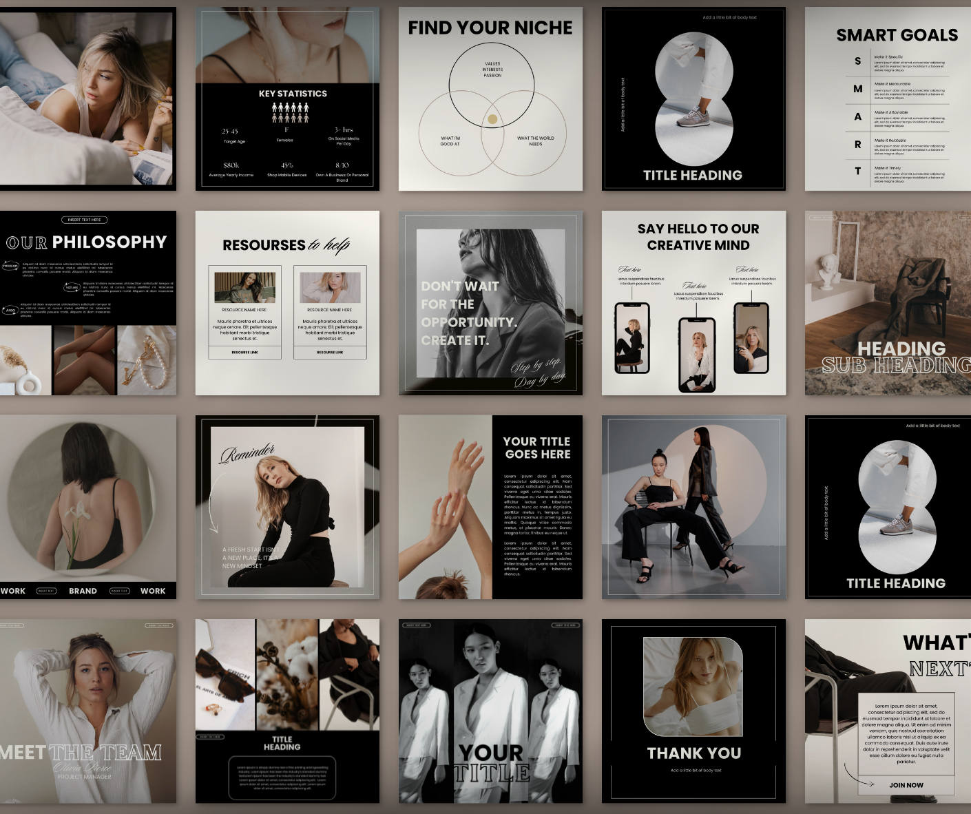 I am in LOVE with these templates. I wanted a bolder, editorial style luxury look and feel for my brand and this is it! You will not be disappointed. I love them so much, I purchased other collections and now I'm about to start to resell them :)
