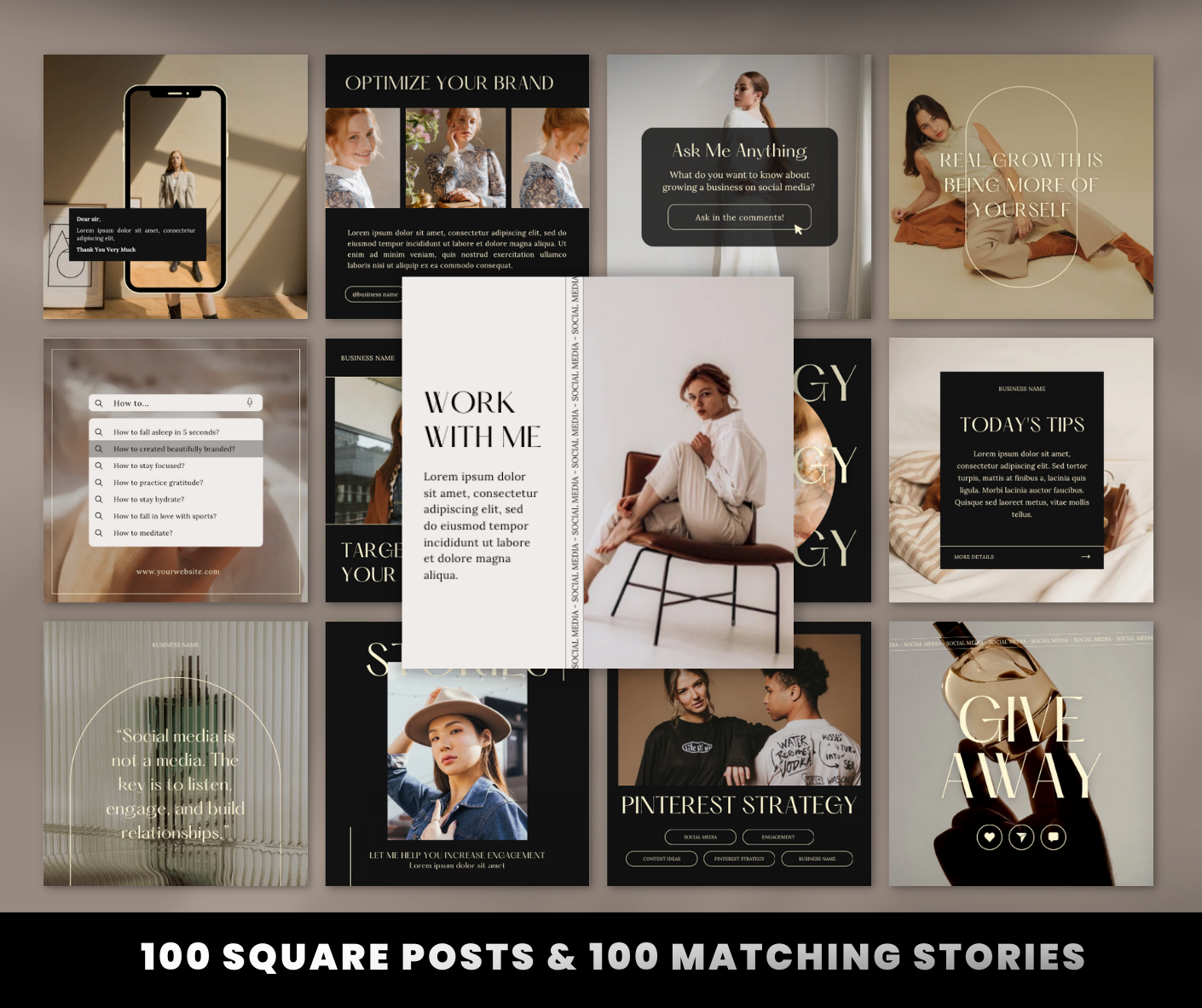 ✨ Comprehensive Package: 100 Instagram Square Posts and 100 Matching Stories included, ensuring your entire profile is cohesive and visually striking.