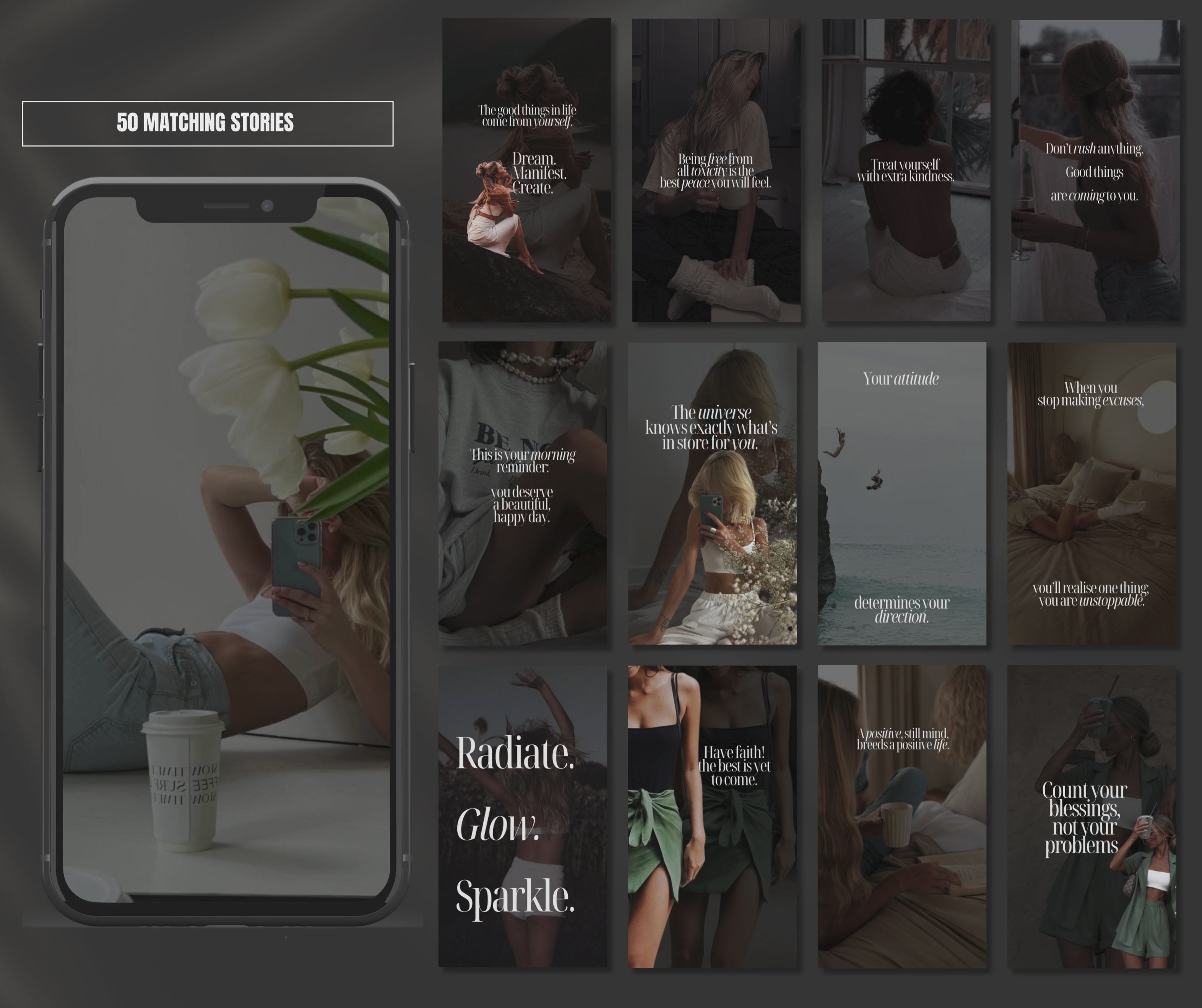 50 Matching Stories: Perfectly sized and animated stories that align with your posts, ensuring a cohesive and engaging social presence.