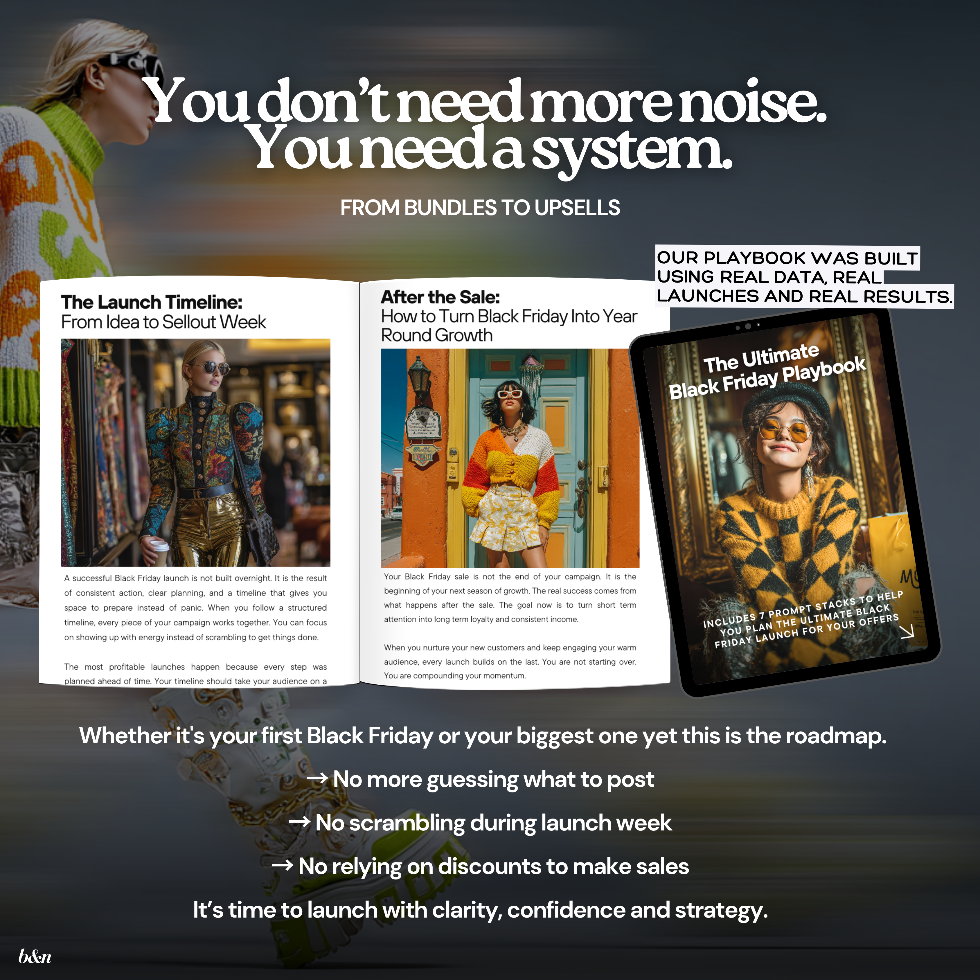 This 52-page Ultimate Black Friday Playbook gives you the exact strategy, content structure and messaging prompts to plan, launch and scale your most successful Black Friday yet.